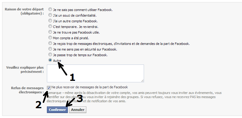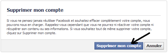 Bien que ce ne fut pas toujours le cas, il existe sur Facebook une procédure de suppression de compte mais elle est parsemée de piège. Pour arriver au bout de la suppression totale, suivez bien les instructions :