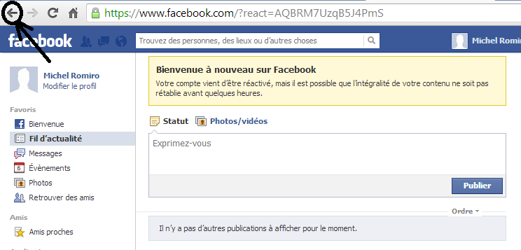 8. Votre compte a été réactivé, ne vous laissez pas abattre et cliquez sur la touche Précèdent en haut à gauche.