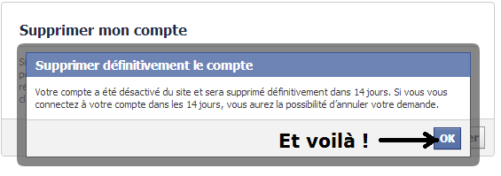 12. Et voilà, votre compte facebook est vraiment et définitivement supprimé !
